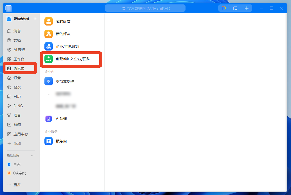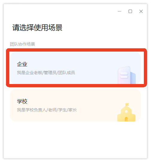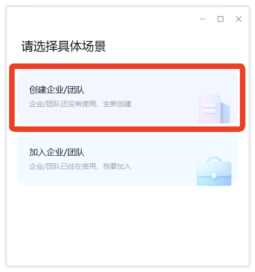 1.点击 “企业” 后,选择 “创建企业/团体”。