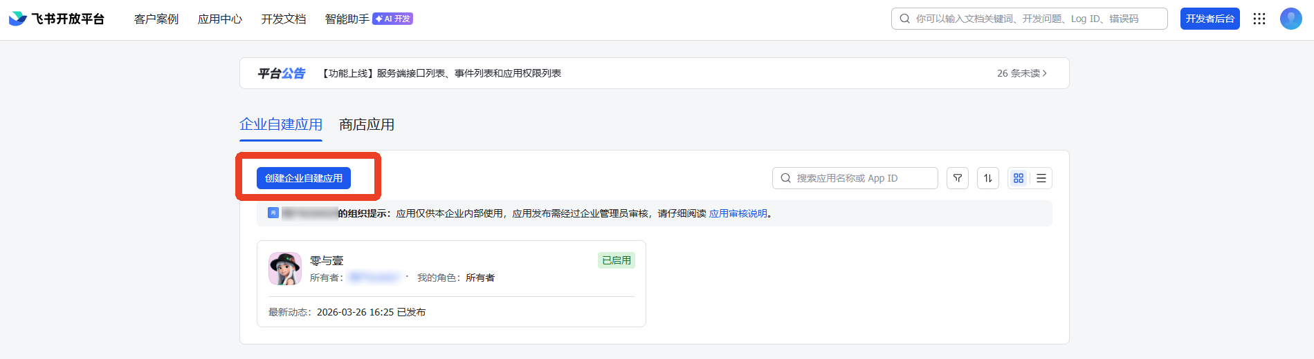 访问飞书开放平台(https://open.feishu.cn/app),使用飞书账号登录。