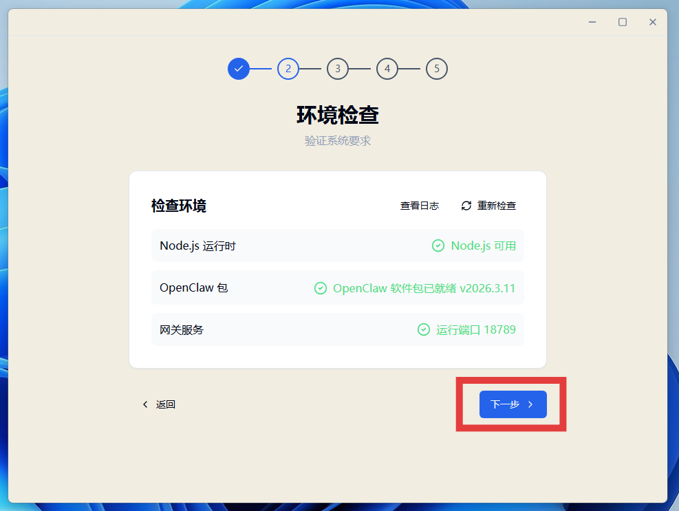 3.安装完成后,点击“下一步”。